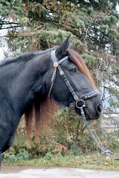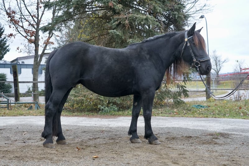 Im Auftrag wegen Bestandsverkleinerung abzugeben: Rappstute, o.Z., geboren 2019, Mohrenkopfabstammung, wunderschönes langes, dichtes Langhaar, wurde 3-jährig angeritten, hatte in 3 Zuchtjahren 3 Fohlen, davon 2 Mohrenköpfe. Eine Stute mit 161 cm im mittleren Rahmen stehend, mit 7.64 ins Stutbuch eingetragen. Vater: Ritter Nero (Mohrenkopf), Mutter nach Wodan Nero. Zurzeit wird die Stute wieder geritten, in der Reithalle und im Gelände. Sie ist nicht tragend und wurde nicht eingespannt. Schmiede- und verladesicher. Standort: Kärnten.