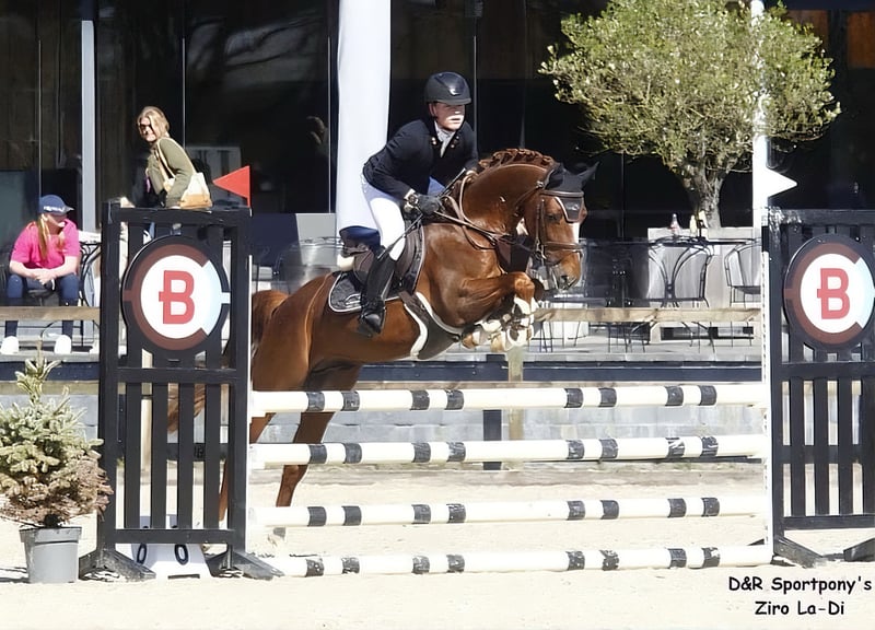 D&R Sportpony’s Ziro La Di Origine : Zip (f. Zodiak) x Manpower Ludinga Année de naissance : 2017 Taille : 1,48 m Étalon approuvé (Peut être castré) D&R Sportpony's Ziro-La-Di (Zip x Manpower Ludinga) est un étalon de poney très intéressant, polyvalent. Lors de la sélection des étalons de 2020, D&R Sportpony's Ziro-La-Di s’est distingué par ses mouvements puissants, avec une utilisation expressive des antérieurs, une excellente technique de saut, une silhouette élancée et une véritable présence d’étalon. C’est un étalon très agréable, doté d’un caractère exceptionnel. Son père, l’étalon de poney récemment distingué par le label KEUR, Zip (Zodiak x E-Boy), est un performer international en dressage, tandis que le sang de Zodiak est également très performant en concours de saut d’obstacles à l’échelle internationale. Zip a concouru en dressage international avec Jill Bogers, obtenant de belles notes en catégorie A, et il participe actuellement en dressage Z avec sa quatrième cavalière. La mère de D&R sportpony's Ziro-La-Di est la jument palomino KEUR Mistique La-Di (f. Manpower Ludinga). À 3 ans, elle a été championne nationale lors de la sélection NRPS. Lors de cette sélection, la jument s’est distinguée par sa silhouette élancée, l’utilisation expressive de ses antérieurs et une forte arrière-main. Elle a transmis ces qualités à son fils Ziro-La-Di. À 4 ans, la jument a remporté la Subli Cup en saut d’obstacles et a déjà concouru en Z en compétition nationale. Père du Veulenkampioen national (🇳🇱 D&R Sportpony’s Zidane 🇳🇱, déjà approuvé par le stud-book AES en 2024) et 3e place (Nova La Vie) en 2021 🏆🥇🥉 Performances : 🏆🥇 Champion régional de saut en Classe B 1ère place en style lors du Dutch Pony Championship saut 5 ans Saut 1,00 / 1,10 m Dressage L : qualifié Dressage Z : prêt à concourir Pour plus d’informations, veuillez nous contacter chez D&R Sportpony's.