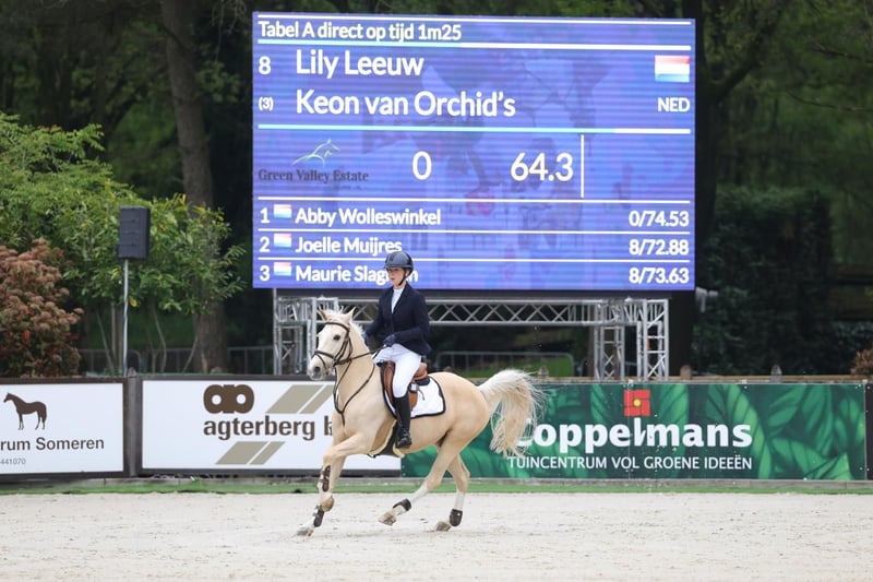 A causa dell'età di nostra figlia, stiamo cercando la miglior possibile corrispondenza per il nostro prezioso pony Keon van Orchid’s. Keon è con noi da quando aveva 5 anni e ormai possiamo definirlo quasi 7 anni nostro pony. È stato educato con calma fino al livello CSIO 130 cm. Keon ha una bella lista di risultati FEI senza eliminazioni e non ha mai subito infortuni. È facile da cavalcare, cambia i canini automaticamente ed è gestibile con un bit normale. Anche in scuderia e nel rapporto quotidiano, è un pony molto dolce e gentile. Per interessati seriamente; fateci sapere chi siete, cosa potete offrire e chissà…