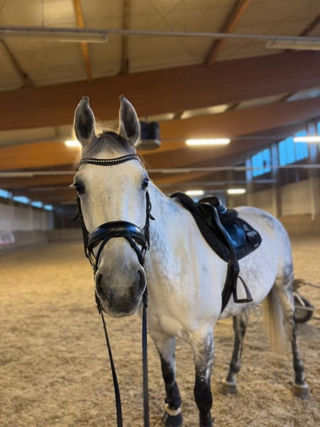 Esta yegua de 10 años es algo especial y temperamental en su manejo, pero siempre completamente manejable. Necesita una persona que establezca límites claros, y entonces se muestra confiable y cooperativa. Bajo la silla, tiene el impulso necesario, pero siempre es controlable. Debido a su sensibilidad, reacciona de inmediato a las ayudas de las piernas y la voz, por lo que no es adecuada para principiantes, sino para un jinete sensible y experimentado. Destaca por sus excelentes movimientos básicos, lo que también la hace interesante para la doma. En competición de saltos tiene experiencia hasta 135 cm, ha sido colocada a nivel nacional hasta 130 cm y ha obtenido victorias internacionales hasta 125 cm. Es tranquila con el herrador, al cargar en el remolque, para paseos y en otras situaciones. Propiedad desde hace 7 años, siempre sana y sin lesiones. Por un accidente y la consiguiente ausencia prolongada de la jinete, solo en las mejores manos. ¡Primero la calidad, luego el precio! PK 20.000-25.000 €.