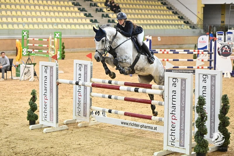 Ta 10-letnia klacz jest nieco specyficzna i uciążliwa w obsłudze, ale zawsze pozostaje absolutnie posłuszna. Potrzebuje osoby, która wyznacza jasne granice, wtedy jest niezawodna i chętna do współpracy. Pod siodłem ma potrzebne zacięcie, ale jest zawsze kontrolowalna. Ze względu na swoją wrażliwość reaguje natychmiast na sygnały od nóg i głosu – dlatego nie jest odpowiednia dla początkujących, lecz dla wyczulonego jeźdźca. Cechuje ją świetna podstawowa chód, co czyni ją interesującą również w dyscyplinie ujeżdżenia. Ma doświadczenie w skokach do 135 cm, w kraju plasuje się do 130 cm, a na arenie międzynarodowej wygrywa do 125 cm. Przebiegła w stajni, spokojna przy czyszczeniu, załadunku, wyjazdach itp. W posiadaniu od 7 lat, zawsze zdrowa i bez kontuzji. Ze względu na wypadek i związany z nim dłuższy czas nieobecności jeźdźca, polecamy tylko w najlepsze ręce! Priorytetem jest jakość, nie cena! PK 20-25 tys. €