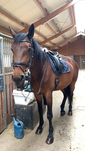 Schweren Herzens suche ich für meine Österreichische Warmblutstute ein neues, liebevolles Zuhause. Sie ist eine tolle Allrounderin: In der Dressur beherrscht sie Lektionen bis Klasse M, im Training springe ich mit ihr Parcours bis 110 cm und in der Vielseitigkeit war sie bis Klasse A unterwegs. Sie eignet sich hervorragend als sicherer Freizeitpartner, bei dem man in Ruhe weiterlernen und Freude am gemeinsamen Arbeiten haben kann. Innerhalb der gut 3 Jahre in meinem Besitz, hat sie mich nach nur einer Woche durch die Reiternadel getragen, dann folgte die Lizenz und wir starteten gemeinsam bis Vielseitigkeit der Klasse A. Im Umgang ist sie absolut brav und unkompliziert. Sie ist gesund, herdenverträglich, schmiede- und verladefromm, kennt Auswärtstrainings und zeigt sich dort souverän. Sie geht gerne ins Gelände – allein ebenso wie in der Gruppe. Sie ist für jeden Spaß zu haben: Halsringreiten, ohne Sattel reiten, Boden- /Freiarbeit, Freispringen, Geschicklichkeitsreiten. Wichtig ist mir die ehrliche Anmerkung, dass sie nicht als Turnierpferd fürs Springen abgegeben wird, da sie auf Springturnieren nicht zuverlässig ist. Für Gymnastik, Cavaletti, Parcours im Training und vielseitige Arbeit ist sie jedoch ideal und motiviert. Ich wünsche mir für sie einen verantwortungsvollen Bestplatz mit abwechslungsreicher Beschäftigung. Probereiten ist nach Absprache möglich.