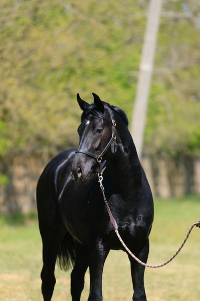 Bon Vivat SV 2023 • Stallion • Oldenburg • Dressage prospect Elegant black stallion with harmonious conformation, strong legs, and rhythmic, elastic gaits. Bon Vivat SV impresses with shoulder freedom, ground-covering movement, and smooth transitions. Brave, reliable temperament makes him an excellent partner for sport. Pedigree: Bon Coeur — Rocky Lee — combining top dressage lines and modern biomechanics. Price: €16,000 Export possible.