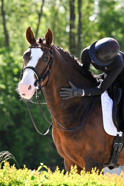 Wymarzony ogier w kolorze czekoladowym z dużą ilością bieli Urodził się w 2017 roku, ma 1,74 m wzrostu i wielokrotnie zwyciężał w klasie M* oraz zajmował miejsca w klasie M**. Jazda na nim to prawdziwa przyjemność. Posiada dużą moc z tyłu, a wszystkie 3 chody (krok, stęp, galop) są znakomite. Pewność rytmu, sprężystość, zdolność do pracy w górę, łatwość w jeździe oraz doskonały charakter... jako ogier jest bardzo łatwy w obłudze, nawet na zawodach.