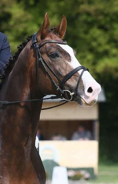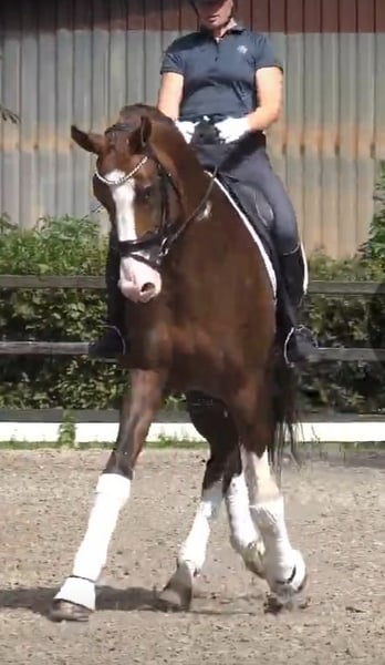 Een droomhengst in choco-ruin met veel wit Hij is geboren in 2017, 1,74 m groot en meerdere keren M* winnaar en M** geplaatst. Het is een genoegen om hem te rijden. Hij heeft veel kracht van achteren en alle 3 GGA zijn uitstekend. Taktzekerheid, schwung, bergop vermogen, licht in de mond en een allerbeste karakter... hij is als hengst super te hanteren, ook op wedstrijd.