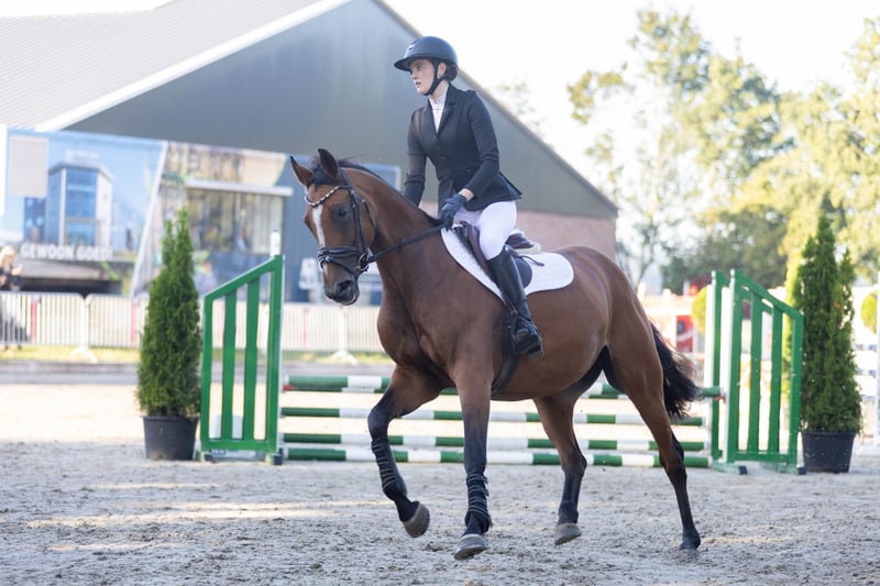LITTLE JAZZ Jazz is a 9-year-old mare with a height of approximately 1.63m. She is easy to ride in dressage, pleasant to ride around the course, and not spooky at the jumps. Currently, she jumps 90cm, but she definitely has the potential for higher. Jazz has a very sweet character; when she trusts you 100%, she will do anything for you. She is well-behaved on trail rides, both alone and in a group, 100% traffic-safe, well-mannered on different terrain, and stands nicely in the trailer. She would also be very suitable for eventing. If you have any questions or are interested, please text, call, or email the contact details below. 0682393901 Sleejenneke9@gmail.com