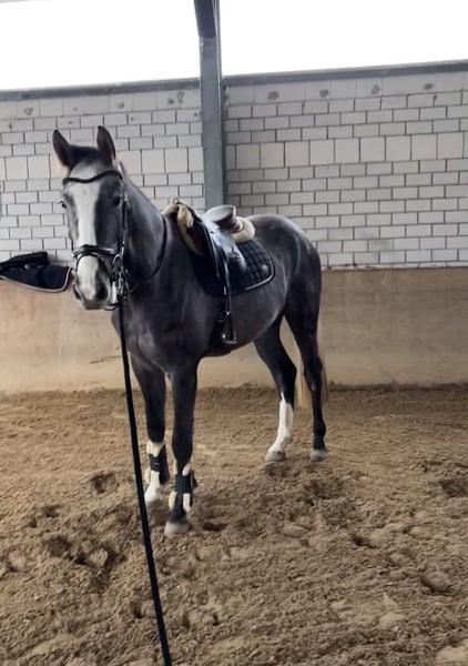 Oldenburger Nachwuchspferd mit viel Qualität – „Little Lion Man“ Zum Verkauf steht ein vielversprechender Oldenburger Wallach, geboren 2022, Schimmel, aktuell ca. 167 cm groß (voraussichtliches Endmaß ca. 170 cm). Abstammung: Like Pleasure M x Magnum van’t Heike. Anbei die Links zu den Erfolgsdaten der Familie https://www.horsetelex.com/horses/family/1701332 https://www.horsetelex.com/horses/pedigree/1701332/cleo-z https://www.horsetelex.com/horses/progeny/1701332 Little Lion Man wurde im vergangenen Jahr schonend angeritten und zeigt sich unter dem Reiter bereits sicher in allen drei Grundgangarten. Aktuell befindet er sich aufgrund seines Wachstums in einer Reitpause, weshalb Probereiten derzeit zum Schutz seiner gesunden Entwicklung nicht möglich ist. Selbstverständlich kann er vor Ort beim Freispringen vorgestellt werden, wodurch sich seine Qualität und sein Bewegungsablauf sehr gut beurteilen lassen. Videos unter dem Sattel sind vorhanden und werden bei Interesse gerne zur Verfügung gestellt. Charakterlich überzeugt Little Lion Man besonders: Er ist ein sensibles, feinfühliges Pferd, dabei sehr menschenbezogen, aufmerksam und stets höflich im Umgang. Er kennt alle Alltagssituationen, zeigt sich vorbildlich beim Schmied, lässt sich problemlos waschen und fertig machen und ist in der Herde sehr sozial und verspielt. Ein herzensguter Nachwuchswallach mit viel Perspektive, der aufgrund seiner Abstammung und Einstellung eine Hoffnung für den großen Sport ist. Eine unauffällige tierärztliche Untersuchung (klinisch sowie röntgenologisch) wurde im Herbst 2025 vor dem Anreiten durchgeführt. Die Unterlagen können bei ernsthaftem Interesse selbstverständlich eingesehen werden. Preis: 15.000 € (Festpreis) -der Preis ist ein Festpreis, da die aktuelle Reitpause aufgrund des Wachstums sowie der momentane Ausbildungsstand bereits in der Preisgestaltung berücksichtigt wurden