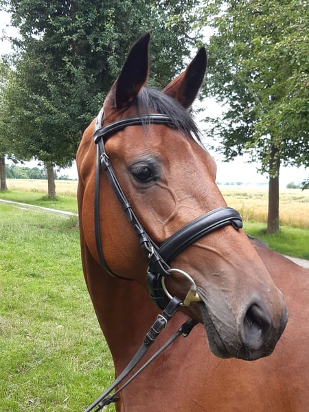 **Verkaufsanzeige: Elegante Oldenburger Staatsprämienstute (Hauptprämie) – Zuchtstute mit viel Potenzial** aus dem Bretton Woods Stamm Zum Verkauf steht eine wunderschöne Oldenburger Stute, geboren im Jahr 2016. Mit ihrem ansprechenden braunen Fell und einer Größe von 168 cm ist sie sowohl optisch als auch vom Format her eine beeindruckende Erscheinung. Diese Zuchtstute überzeugt durch ihre elegante Linienführung und ihre ausgeglichene, freundliche Natur. Sie stammt aus einer renommierten Zuchtlinie und bringt wertvolles Zuchtpotenzial mit sich. Ihre solide Grundausbildung sowie ihre guten Bewegungen machen sie zu einer vielversprechenden Basis für Zucht oder den ambitionierten Freizeitreiter. Dank ihres angenehmen Charakters ist sie gut zu handhaben und zeigt sich stets zuverlässig im Umgang. Diese Oldenburger Stute ist die ideale Wahl für Züchter, die auf der Suche nach einer qualitativ hochwertigen Zuchtstute sind. Ein echtes Schmuckstück mit viel Charakter und Potential! War die letzten Jahre als Zuchtstute eingesetzt und daher reiterlich nicht weiter gefördert. Hat Ihre Stutenleistungsprüfung mit 8,26 als zweite abgelegt. Bei uns hat sie zwei wundervolle Fohle zur Welt gebracht, denen sie ihren Adel und Eleganz weitergeben konnte. Wegen Verkleinerung der Zucht muss ich mich leider von dieser zauberhaften Stute trennen. Auf Wunsch kann die Stute bei uns noch besamt werden. Bei Interesse oder weiteren Fragen stehe ich Ihnen gerne zur Verfügung.