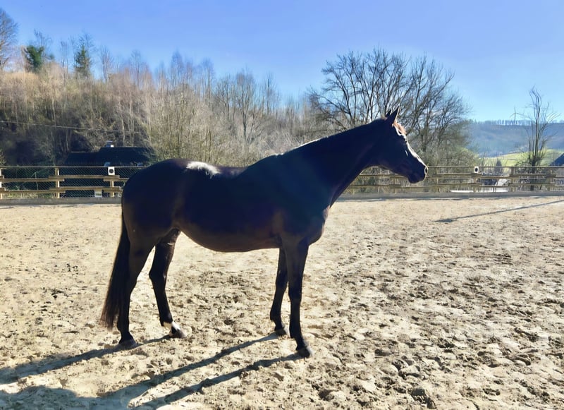 Zum Verkauf steht Takara, eine am 25.04.2016 geborene Stute mit erstklassigem Pedigree und ansprechender Optik. Als Tochter von Blue Hors Dreamline und Enkelin von K2 vereint sie sportliche Eleganz mit einem korrekten Gebäude. Sie wurde bereits als Fohlen prämiert und befindet sich seit dem Absetzen in einer Hand (direkt vom Züchter übernommen). Mit einem Stockmaß von ca. 1,68 m ist Takara auch für größere Reiter bestens geeignet. Ihre Ausbildung begann erst im Alter von vier Jahren, wobei großer Wert auf einen behutsamen und schonenden Start in ihr Reitpferdeleben gelegt wurde. Seither wird sie freizeitmäßig gefördert und zeigt sich dabei sehr unkompliziert – auch bei Auswärtsfahrten. Trainingseinheiten auf fremden Anlagen meistert sie souverän. Im Gelände präsentiert sie sich als zuverlässige Begleiterin, sowohl alleine als auch in der Gruppe. Im täglichen Umgang sowie bei der Pflege überzeugt Takara durch ihre freundliche, menschenbezogene Art. Sie schätzt abwechslungsreiche Arbeit und zeigt besonders viel Freude an der Doppellonge sowie an Bodenarbeit. Takara ist ein rittiges Pferd mit guter Arbeitseinstellung. Aufgrund ihrer Feinfühligkeit und Sensibilität ist sie jedoch kein Anfängerpferd. Sie benötigt eine feste Bezugsperson, die ihr Sicherheit gibt, sowie ein ruhiges, stressfreies Umfeld. Ihr Wohlbefinden steht an erster Stelle: Da sie aktuell eine Haltung mit direktem, jederzeit zugänglichem Paddock genießt, wird sie nicht in reine Boxenhaltung abgegeben. Ein Platz mit viel Bewegung, frischer Luft und Sozialkontakt ist Voraussetzung. Da mir ein bestmöglicher Lebensplatz und eine liebevolle Bezugsperson besonders wichtig sind, gilt ausdrücklich: Platz vor Preis.