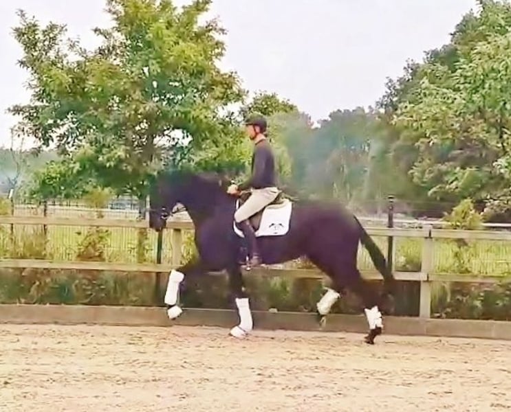 Highlight de l'élevage dans des mains estimables ! ! Jument noire Oldenbourg 2016 par Morricone/Jazzman de la souche Walhdexe (qui compte parmi l'argenterie d'Oldenbourg). 3 générations de juments St.-Pr. ou Elite dans le pedigree. La jument est la sœur de chevaux de championnat, de chevaux intermédiaires, de juments d'élite, etc. Par exemple, le frère Qualification a gagné des chevaux de dressage de 6 ans, a été nominé pour l'approbation et la vente aux enchères et plus tard plus de 40 fois vainqueur et hautement classé en S* et S**. Des sœurs ont obtenu des primes et des juments d'élite (certaines ont été admises au concours des juments d'élite). Ses sœurs aînées ont également produit des chevaux de sport très performants qui ont entre-temps atteint le niveau S en dressage. . La mère est la sœur de deux chevaux de Grand Prix internationaux (comme par exemple la jument d'élite Diamantina qui a été l'un des chevaux de Grand Prix les plus couronnés de succès jusqu'à sa nomination aux Jeux Olympiques), d'un étalon approuvé, de juments d'élite... La grand-mère était une jument championne régionale des chevaux de selle à Oldenburg, finale BCH, mère d'étalon. Ici Horsetelex lien vers la mère et quelques frères et sœurs de la jument https://www.horsetelex.de/horses/progeny/385310 Son père Morricone, étalon vainqueur au Oldenbourg, est devenu une légende en matière d'hérédité. Il a déjà terminé son test de 30 jours comme vainqueur de dressage et est actuellement vainqueur de Grand Prix. Grâce à son grand-père Jazzman, Jazz et Cocktail (Anky van Grunsven), les deux étalons de dressage les plus performants des Pays-Bas, font partie de son pedigree. La jument a été débourrée de manière solide (elle a 3 très bonnes GGA ! et était absolument facile à monter) et a ensuite été mise à la reproduction car sa mère était décédée. Elle n'a pas été montée depuis sa première insémination. La jument a eu deux poulains de race noire en 2022 et 2023 et n'est pas inséminée pour 2025 en raison de circonstances personnelles. www.quadriga-pferdehaltung.de