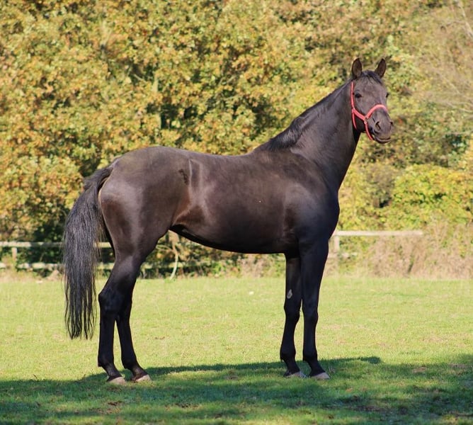 Zuchthighlight in wertschätzende Hände !! Oldenburger Rappstute 2016 von Morricone/Jazzman aus Walhdexe Stamm (der zum Tafelsilber in Oldenburg zählt). 3 Generationen St.-Pr. oder Elitestuten im Pedigree. Stute ist Schwester zu Championat Pferden, Intermediare Pferden, Elitestuten usw. So hat zum Beispiel Bruder Qualifikation 6 jährige Dressurpferde gewonnen, war nominiert für die Körung und Auktion und später über 40 x Sieger und hoch platziert in S* und S**. Schwestern Prämien und Elitestuten (einige mit Zulassung zur Elitestutenschau). Auch aus ihren älteren Schwestern gibt es bereits hoch erfolgreiche Sportpferde die inzwischen bis S Dressur erfolgreich sind. . Mutter ist Schwester zu 2 internationalen Grand Prix Pferden (so zum Beispiel zu Elitestute Diamantina die eines der erfolgreichsten Grand Prix Pferde bis hin zur Olympia nominierung war), gekörtem Deckhengst, Elitestuten... Großmutter war Landessiegerstute bei den Reitpferden in Oldenburg, Finale BCH, Hengstmutter Hier Horsetelex Link zur Mutter und einigen Geschwistern der Stute https://www.horsetelex.de/horses/progeny/385310 Vater Morricone als Oldenburger Siegerhengst ist inzwischen eine Legende in Punkto Vererbung. So beendete er bereits seinen 30 Tage Test als Dressursieger und ist inzwichen Grand Prix siegreiche. Durch Großvater Jazzman kommen Jazz und Cocktail (Anky van Grunsven) die beiden erfolgreichsten Dressurdeckhengste in Holland, ins Pedigree. Stute wurde solide angeritten (hat 3 sehr gute GGA ! und war absolut leicht rittig) und dann in die Zucht genommen da ihre Mutter verstorben war. Seit ihrer ersten Besamung nicht mehr geritten. Stute hatte 2022 und 2023 zwei bewegungsstarke Rappstutfohlen und ist wegen persönlicher Umstände für 2025 nicht besamt. Die Stute war bisher immer gesund hat aber im Moment leicht verschärftes Atemgeräusch und leichte alte Verdickungen an den Vorderfüssen (vom drauf plumpsen in der Trächtigkeit). Beides behindert sie aber nicht als Zuchtstute. www.quadriga-pferdehaltung.de