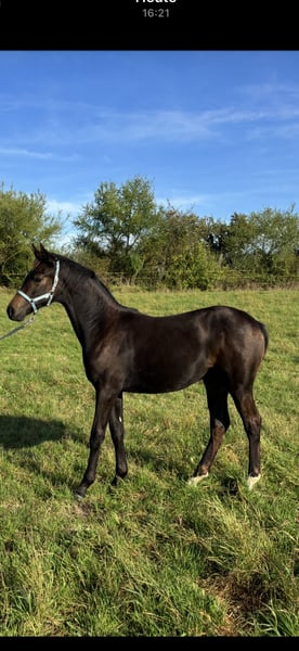 For sale is a promising Oldenburg mare, born in 2025. With her elegant, dark bay coat and an approximate height of 16.1 hh, she is a true eye-catcher. This talented mare is ideally suited for dressage and already shows promising movement development. Her calm and friendly nature makes her an excellent partner for ambitious riders looking to excel in dressage. The mare is well-behaved, well-trained, and has a balanced temperament. If you are interested or would like more information, please feel free to contact me. Don’t miss this opportunity – arrange a viewing! She is a first foal by Lord Charmeur, sired by Lord Europe, who successfully completed his 50-day test with a score of 9.0 this year. Her dam line includes her full brother, Bonka S-Dressage, who is successful in dressage, as well as Rosentanz by Rohdiamant from the same dam line.