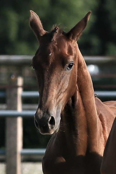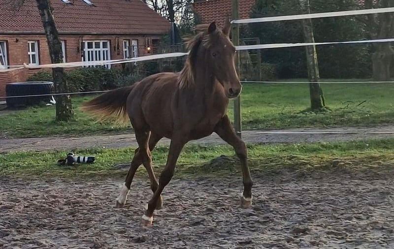 FONTANI COCO RS was born on January 21, 2024. She has inherited the quality of her mother, the state premium mare by DON SCHUFRO x FÜRST HEINRICH. She can also do the foal ABC. Currently, she is in a lot of development, but her amazing movement does not hinder that.