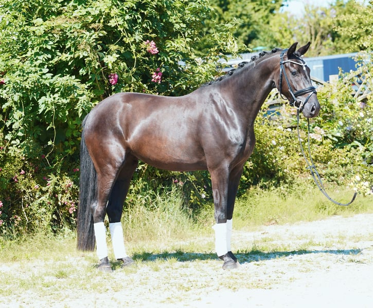 Esta encantadora hija de So Perfect impresiona con tres excepcionales aires básicos y mucha expresión. A principios de año fue montada de manera suave, luego volvió al prado y ahora debería ser promovida más. La yegua se encuentra actualmente en un establo abierto, y se muestra siempre tranquila y sin complicaciones en nuestro trato diario, integrándose sin problemas en el grupo. Un gran caballo con una base excelente, ideal para jinetes que buscan asegurar un caballo con la mejor calidad básica. Debido a la falta de tiempo, aún no ha sido trabajada de nuevo y se ofrece como yegua de cría/compañera. No se aceptan correos, solo llamadas. Datos sin garantía. Precio más IVA.