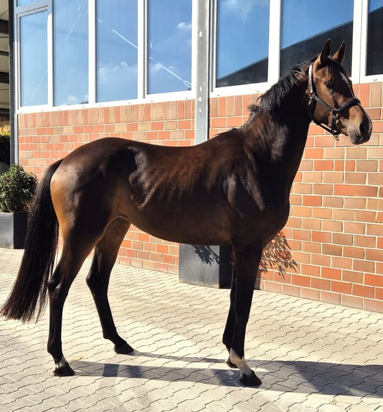 *** Featherlight *** The name says it all. Featherlight dances gracefully through the dressage arena. Fresh from the summer pasture, she demonstrates high quality and expression in all three GGA movements. Still a bit rough, but well-mannered. Additionally, she is farrier- and loading-trustworthy. She is developing into a jewel that just needs some polishing! As a foal, she was awarded the foal premium. She is shaping up to be an excellent training horse for the grand arena. The mare has already undergone a complete TÜV, including her back. She has a chip that can be surgically removed. www.fohlenfreunde-sportpferde.de