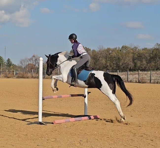 🎄𝐓𝐇𝐄 𝑯𝒐𝒍𝒊𝒅𝒂𝒚 𝐂𝐋𝐀𝐒𝐒𝐈𝐂🎄 Happening now thru MONDAY | DECEMBER 15th - Available EXCLUSIVELY on HorseBid's website! For more details and to register visit: www.Horsebid.com CONSIGNOR CONTACT: Pleasant Valley Equine 270-635-5572 LOCATION: Robards, KY BREED: German Oldenburg Verband REGISTERED: Yes REGISTERED NAME: Holly Rock CHF COLOR: Black & White Paint HEIGHT: 15.2 AGE: 4 GENDER: Mare A change in life circumstances and divorce has led to the sale of Holly Rock CHF (Rock Solid x FYF Hap Hazard), a talented and versatile 4-year-old mare. Having been started in her training, she has already participated in several fox hunting events, showcasing her exceptional walk, canter, and forward-thinking nature. With her athletic ability and versatility, Holly is well-suited for multiple equestrian disciplines, including Hunters and Eventing. She is registered with the German Oldenburg Verband and is designated as a Skewbald bay, as the organization does not recognize Paint colors. Her sire, Rock Solid (Rosenthal x El St. Parabola), boasts a distinguished dressage career, competing at the FEI levels, and hails from the renowned Abita/Elfi Hanoverian mare line. He has achieved numerous wins and titles, including a successful 70-day stallion test. His offspring are excelling in various equestrian pursuits, with some achieving Grand Prix levels and earning year-end titles. Holly has a great disposition and willingness to please that makes training and riding a wonderful experience. She has been through our desensitizing program. Holly enjoys playing with the tarps, balls, and pool noodles. She handles gunfire, bull whips, traffic, and ATVs. She is great out in the woods and has been trail ridden all over Kentucky and Tennessee. Holly is a blast in the arena. She is soft and supple in the mouth and gives laterally and vertically with minimal pressure. She gets her leads and even has a flying lead change. Holly started going over fences and seems to love it. She would make a great Eventer and Fox-hunter. If you're looking for your next Dressage mount, Holly will succeed in that discipline too. She has already started on many dressage moves. The sky's the limit with her. Holly is sold 100% sound with no vices. She is up to date on all vaccines & Coggins. She is currently barefoot & handled rocky terrain with no issues. Holly is easy to load, clip, bathe & stands well for saddling and bathing. Call today to set an appointment to meet Holly: 270-635-5572