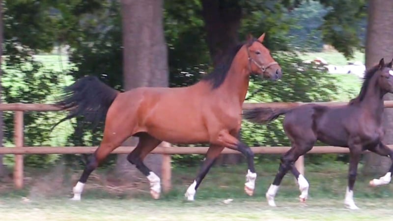 Bona Baroja ist eine sehr moderne, überragende Zuchtstute mit sehr viel Schwung in der Bewegung. Sie verfügt über drei sehr gute Grundgangarten. Dreijährig wurde sie leicht angeritten, was sie sehr gut machte. Vierjährig bekam sie ihr erstes Fohlen von Bon Bolero, siehe YouTube Video. Sie ist aktuell tragend von Va Bene. Geburtstermin ist der 07.05.2026. Die Stute ist aus dem Blankenese Stamm. Mutter Baroja war Brilliant Ring Stute , aus ihr sind hocherfolgreiche Pferde im Sport und in der Zucht , sowie der gekörte Hengst Imagination. Diese hochtragende Stute wird umständehalber abgegeben. Dreijährig wurde sie geröntgt , hatte einen sehr guten TÜV.