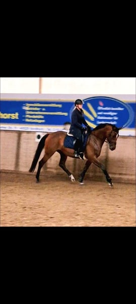Zum Verkauf steht eine bildschöne 6 jährige Stute. Sie stammt ab von Foundation x Lauries Crusador x Wittinger. Sie wurde schonend angeritten und hat danach Pause durch ihre Trächtigkeit bekommen. Videos vom reiten vor der Trächtigkeit vorhanden. Aktuell wird sie nicht geritten. Auch für die Zucht interessant! Ihr erstes Fohlen ist im letzten Jahr geboren und es verlief alles unkompliziert. Sie hat direkt aufgenommen. Sie hatte 3jährig einen Griffelbeinbruch. Dieser ist vollständig verheilt und zeigt sich nur noch mit einer minimalen Verhärtung am Bein. Die Stute ist sehr Menschenbezogen und brav im Umgang. Sie ist eine Tochter des Dessurpferdemachers Foundation. 2024 schaffte er den Sprung unter die Top 14 der weltbesten Dressurvererber, laut Ranking des Weltzuchtverbandes WBFSH. 2020 wurde Foundation vom Hannoveraner Verband mit dem begehrten Grande Preis ausgezeichnet.2025 erhielt er in Oldenburg die Auszeichnung Elitehengst. In nächster Generation folgt der Vollblüter Lauries Crusador xx, der das Pedigree der Stute mit dem wichtigen Edelblut absichert. Die Stute entspringt dem Hannoveraner Stutenstamm 1189107 (Jamuna) Aktuell ist Kein TÜV vorhanden. Kann bei Kostenübernahme gemacht werden. Bitte nur bei ernsten Interesse melden.