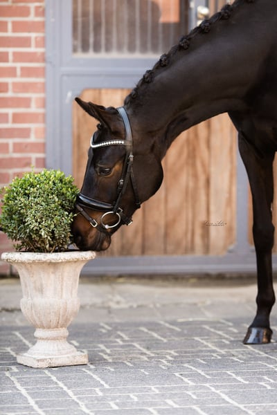 Te koop staat een beeldschone net 6 jaar oud geworden zwarte merrie van Fürst Wilhelm × Benaggio. Stokmaat 1,66 m. Ze is sinds veulen bij ons. Ze is op een natuurlijke manier in de kudde grootgebracht en ook bij ons ingereden. Ze is zeer fijn en makkelijk te rijden en heeft een mooie looplust. Omdat ze zo mooi fijn is, wensen we een ruiter met een uitgebalanceerde basiszit en een zachte onafhankelijke hand. Ze is helemaal helder van geest, altijd braaf en onverstoorbaar, ook in het terrein. Ze leeft bij ons in een open stal maar kent ook de box. Ze is zeer sociaal en verdraagzaam. Het zou fijn zijn als haar nieuwe thuis haar een open stal, een paddockbox, of een box met veel uitloop en sociaal contact kan bieden. Omdat ze een echte schat is, wensen we eigenaren die haar als een gezinslid beschouwen. Ze heeft aan beide voorbenen vrij grote overbenen, maar daar heeft ze nooit problemen mee gehad. Er is een goede röntgenkeuring inclusief rug zonder bevindingen van november '21 beschikbaar. Ze is regelmatig ontwormd, en voorgesteld bij de hoefsmid en de fysiotherapeut. Ter bescherming van ons paard wordt voor het proefrijden een vergoeding van 35 euro gevraagd, die bij aankoop wordt terugbetaald. Gelieve alleen telefonisch contact op te nemen via 0152 34387627.