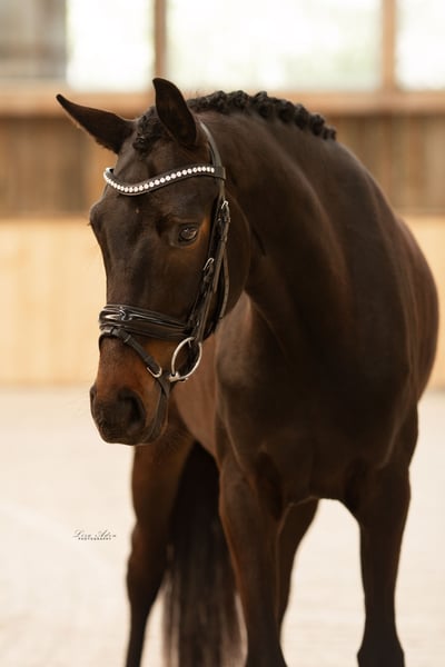 In vendita una bellissima giumenta nera appena compiuti 6 anni, figlia di Fürst Wilhelm × Benaggio. Altezza al garrese 1,66 m. È con noi fin da puledra. È cresciuta in modo naturale in un branco ed è stata addestrata da noi. È molto fine e facile da montare, dotata di un bel piacere di movimento. Poiché è molto sensibile, desideriamo un cavaliere con una posizione di base equilibrata e una mano morbida e indipendente. È molto lucida, sempre brava e impavida, anche all'aperto. Vive con noi in un paddock, ma conosce anche il box. È molto socievole. Sarebbe bello se la sua nuova casa le offrisse un paddock, un box con paddock o un box con molto spazio e contatto sociale. Poiché è un vero tesoro, desideriamo proprietari che la considerino un membro della famiglia. Ha delle grosse esostosi su entrambe le gambe anteriori, ma non le hanno mai causato problemi. È disponibile un buon TÜV radiografico, incluso schiena, senza riscontri di novembre '21. È stata regolarmente sverminata, visitata dal maniscalco e dalla fisioterapista. Per tutelare il nostro cavallo, viene richiesta una tariffa di 35 euro per la prova di equitazione, che verrà rimborsata in caso di acquisto. Si prega di contattare solo telefonicamente al numero 0152 34387627.