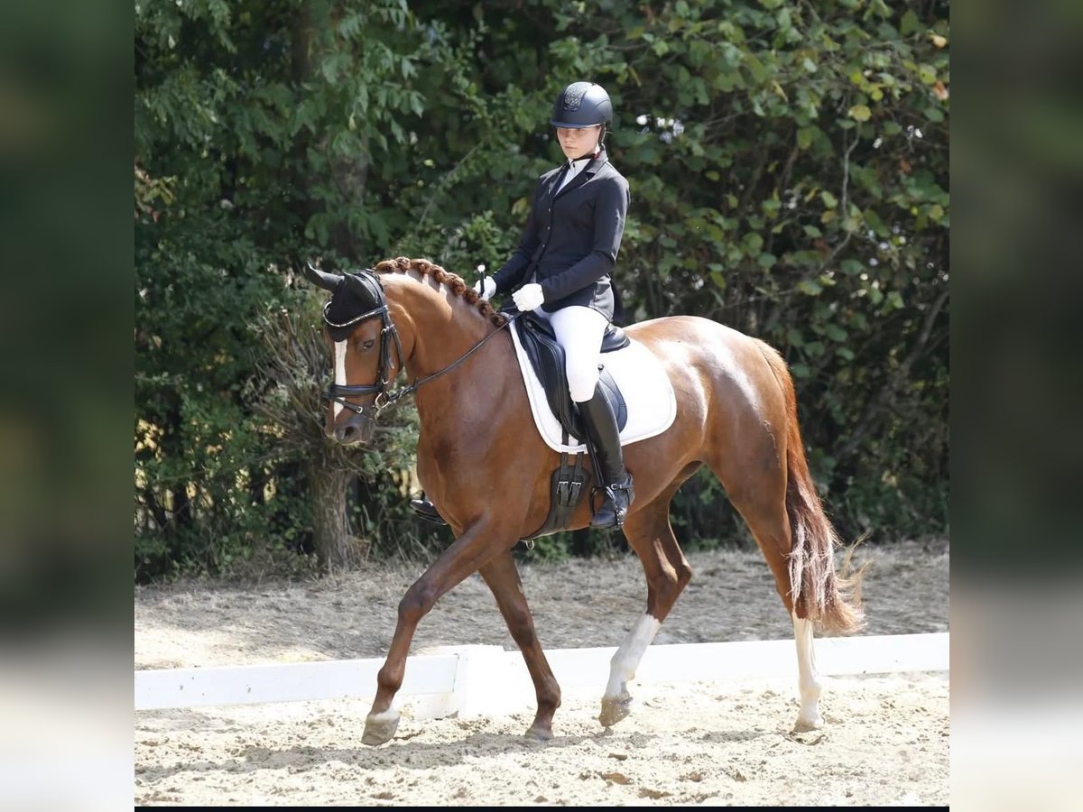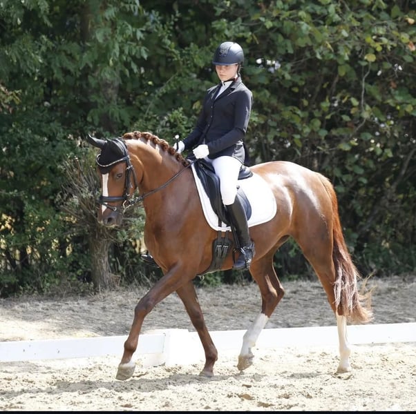 Wir verkaufen unsere Stute, die wir dreijährig direkt vom Züchter roh gekauft haben. Die Stute kannte damals noch nichts und wurde anschließend schonend eingeritten und weiter ausgebildet. Sie ist turniererfahren und zeigt sich dort genauso brav wie zu Hause. Man kann mit ihr problemlos alleine ausreiten. Sie ist doppelt veranlagt für Dressur und Springen. In der Dressur lässt sie sich fein und angenehm reiten. Im Umgang ist sie unkompliziert und menschenbezogen. Leider hatte sie eine Sehnenverletzung, die noch nicht vollständig ausgeheilt ist. Deshalb verkaufen wir sie deutlich unter Wert. Die Halbgeschwister unserer Stute sind züchterisch hoch erfolgreich und wurden bis zum Brillantring sowie als Staatsprämienstuten prämiert. Wir wünschen uns für sie einen Platz mit Geduld und Sachverstand, an dem man ihr die nötige Zeit gibt.