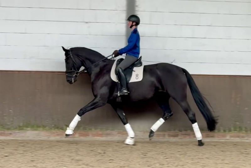 Liebe Kaufinteressenten, Für Fragen oder Terminvereinbarungen senden Sie uns bitte eine WhatsApp oder E-Mail. Telefonisch erreichen Sie uns WERKTAGS und am besten gegen Mittag. Sollte dem nicht so sein, bitte einfach eine Nachricht schreiben und wir melden uns zurück. Wir freuen uns auf Ihre Kontaktaufnahme! „Fürstin“ ist eine schwarze Perle, wie sie im Buche steht. Mit drei sehr guten Grundgangarten ausgestattet weiß sie durch ihre wunderbare Rittigkeit und ihr tolles Seitenbild direkt alle Blicke auf sich zu ziehen. Sie ist auf dem Turnier bereits siegreich in Dressupferde A und L und nun im Training auf einem guten M-Niveau. Bei der täglichen Arbeit bereitet sie einfach Freude und ist sehr bemüht, dem Reiter immer alles Recht zu machen. Sie ist unglaublich unkompliziert und sehr fein und angenehm zu reiten. Durch ihren sehr ausgeglichenen und liebevollen Charakter gibt sie dem Reiter immer Sicherheit und ein ganz wunderbares Gefühl im Sattel. Bisher wurde sie ausschließlich von einer Amateurin ausgebildet, die sie nun aufgrund der Geburt ihres Kindes schweren Herzens nur in beste Hände verkaufen möchte. Sie ist außerdem direkt vom Züchter und sehr behütet und fair aufgewachsen und ausgebildet worden. Eine wahre Schönheit mit sehr viel Qualität und Perspektive für die Zukunft! Das Pferd hat gute aktuelle Röntgenbilder. Es ist lediglich ein Röntgenbefund am Genick, der klinisch absolut unauffällig ist.