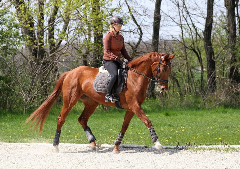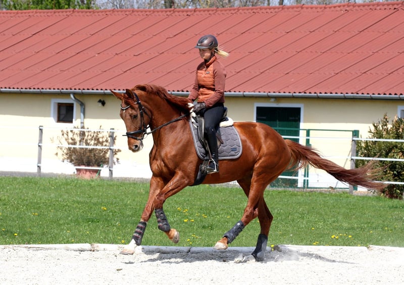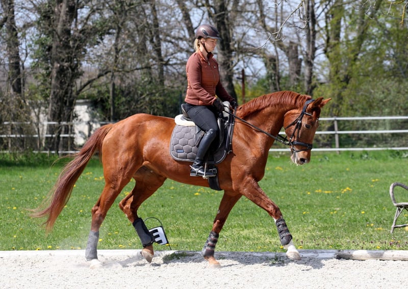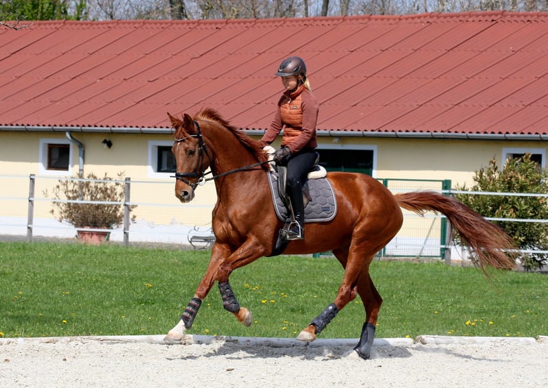 For sale: 8-year-old Oldenburg mare Le Vivaldi x Fürst Heinrich with a height of 172cm, directly from the breeder. The mare has been started and trained by the breeder, has always been in one hand, and is a cuddly horse. Transport and farrier are no problem. She has never been sick or injured, has no vices, and comes with a 1* vet check including back X-rays. The chestnut has very good movement, is very willing to work, and always wants to do everything right. Trained up to LM level. Only to be placed in good hands.