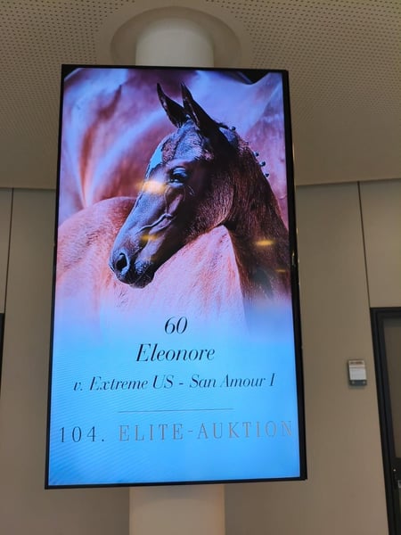 Filly by Extreme US x San Amour x Sandro x Caretano Z 👉Awarded by the Oldenburg Verband 👉Approved for Elite Auction in Vechta on October 3, 2025 Born on June 2, 2025 WFFS free The filly has an active hindquarters and a natural uphill tendency. In trot, she demonstrates a rhythmic mechanics with plenty of shoulder freedom, and her canter is large-strided and uphill. The walk is particularly noteworthy with a lot of ground cover. The dam consistently passes on excellent jumping ability, making her interesting for eventing as well! In handling, she is attentive, people-oriented, and uncomplicated – the basics of foal handling (halter, hooves, leading) have been practiced appropriately for her age and work flawlessly. Regularly visited by the farrier, regularly dewormed. The dam has repeatedly proven her breeding reliability, and we already have further good offspring from this mare available – hence this foal is for sale. Pedigree • Sire: Extreme US (Escamillo x Vivaldi) o Double Pavo Cup winner (2023 at four years old with a dream score of 10 from Daniel Bachmann Andersen & 2025 at six years old) o Overall winner of the KWPN stallion tournament series 2023/24 o Winner of the KWPN stallion performance test with 89 points • Dam: San Amour x Sandro x Caretano Z o Almost all previous offspring have been awarded or distinguished with elite titles! o Consistently passes on type, rideability, and secured jumping ability Successful half-siblings: • Monday 28 (by Morricone) o Winner of a riding horse test (trot, walk, canter each 8.5) o Ridden by Walter Wadenspanner, owned by Thomas Müller o Marketed through the Elite Foal Auction in Vechta • Sakura (by Sezuan) o Main studbook Hanover, overall score 8.0, jumping ability 8, trot 8, canter 8, walk 7.5 o Premium candidate, 1b premium at the Herwart von der Decken Show 2020 o 1a prize at the association breeding show o Winner of dressage riding horse test!!! o Marketed through elite auctions in Verden Dam line – Thoroughbred family 16 (Aktinie xx) One of the most proven thoroughbred lines in Germany, successful in dressage and show jumping breeding. Produced among others: • Sybelius – internationally successful up to S-dressage • Camilie Z (by Caretano Z) – international 1.60 m show jumping with Athina Onassis • Amerigo Vespucci xx – influence in Hanoverian breeding • Feuerfunke xx & Feuertänzer xx – dressage and eventing • Fürst Nymphenburg I & II (Florencio I x De Niro x Argentinus) – established in sport and breeding https://horse24.com/de/auctions/details/104-elite-auktion-437/lots/eleonore-801