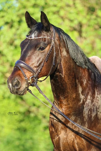 Schweren Herzens trenne ich mich aus persönlichen Gründen von meinem "Kleinen Prinzen", der mich 15 Jahre begleitet hat. Dementsprechend ist mir ein sehr gutes Zuhause für ihn besonders wichtig. Platz vor Preis! Prinz ist gesund, sehr zuverlässig und geht mit seinem Reiter durch dick und dünn. Das Gelände liebt er, alleine auszureiten ist mit ihm absolut entspannt möglich. Er ist dressurmäßig gut auf L-M-Niveau ausgebildet und springt auch gern mal über kleine Sprünge. Turniermäßig wurde er von mir nicht vorstellt, aufgrund seiner Charakterfestigkeit und seines Schwungs wäre das aber problemlos möglich. Prinz ist sehr verschmust. In 15 Jahren hat er nie einen Reiter abgeworfen und ist damit besonders für Anfänger und ängstliche Reiter geeignet. Prinz ist mit anderen Pferden sehr verträglich, auch eine gemischte Herde ist für ihn kein Problem. Selbstverständlich ist er schmiede- und verladefromm. Videos versende ich gern auf Anfrage.