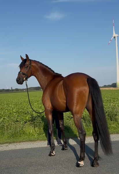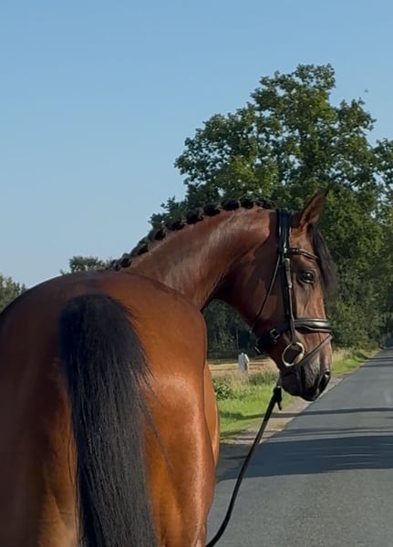 ⭐️⭐️⭐️Viconte x Zack ⭐️⭐️⭐️ 3.5-year-old gelding 1.68 m Vihuri Flying is a young horse that always wants to do everything right. Healthy with no defects/restrictions and a very good vet check. His absolutely kind and honest character, along with his very good rideability, offers a real prospect for the future. Three above-average basic gaits with great mechanics. In handling, with the farrier/loading, and in the field, he shows a lot of composure and calmness. Even in different arenas, he gives a great feeling. This gelding comes directly from the breeder and has grown up with very good and loving training. Vihuri is always outdoors and is also compatible with herds. If you are looking for a special training horse and partner, this horse is just right for you. Videos will be sent via WhatsApp (0176-27767762) upon request of the full name.