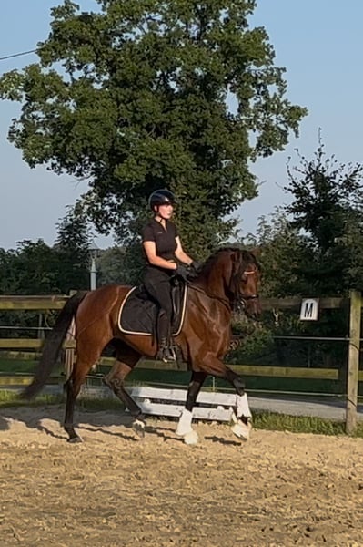 ⭐️⭐️⭐️Viconte x Zack ⭐️⭐️⭐️ 3,5-jarige ruin 1,68 m Vihuri Flying is een jong paard dat altijd alles goed wil doen. Gezond zonder gebreken/beperkingen met een zeer goede keuring. Zijn absoluut brave en eerlijke karakter, naast zijn zeer goede rijdbaarheid, biedt een echte toekomstperspectief. Drie bovengemiddeld goede basisgangen met een geweldige mechaniek. In de omgang, bij de smid/laden en in het terrein toont hij veel overzicht en rust. Ook op verschillende locaties geeft hij een geweldig gevoel. Deze ruin komt rechtstreeks van de fokker en is opgegroeid met een zeer goede en liefdevolle opvoeding. Vihuri is altijd veel buiten en ook kuddevriendelijk. Wie op zoek is naar een bijzonder opleidingspaard en partner, is bij dit paard aan het juiste adres. Video's worden op aanvraag van de volledige naam via WhatsApp (0176-27767762) verzonden.