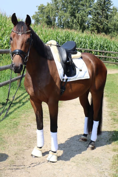 Franzl ist ein 4-jähriger Wallach, der vor wenigen Wochen schonend unter dem Sattel angeritten wurde und sich dabei von Beginn an als echtes Verlasspferd zeigt. Er überzeugt durch seine Rittigkeit, Lernbereitschaft und eine positive Arbeitseinstellung. Im Gelände präsentiert er sich absolut brav und gelassen und auch im täglichen Umgang ist er unkompliziert und angenehm. Seine drei sehr guten Grundgangarten bieten viel Entwicklungspotential für die weitere Ausbildung und machen ihn zu einem vielversprechenden Nachwuchspferd für den Sport oder ambitionierten Freizeitreiter. Franzl begeistert nicht nur mit seinem Bewegungspotential, sondern vor allem durch seinen einzigartigen Charakter, der die Arbeit mit ihm zu etwas ganz Besonderem macht. Standort: Ennepetal Preis: 25.000 € VB Bei Interesse freuen wir uns jederzeit über Ihre Kontaktaufnahme und schicken auch gerne Videos!