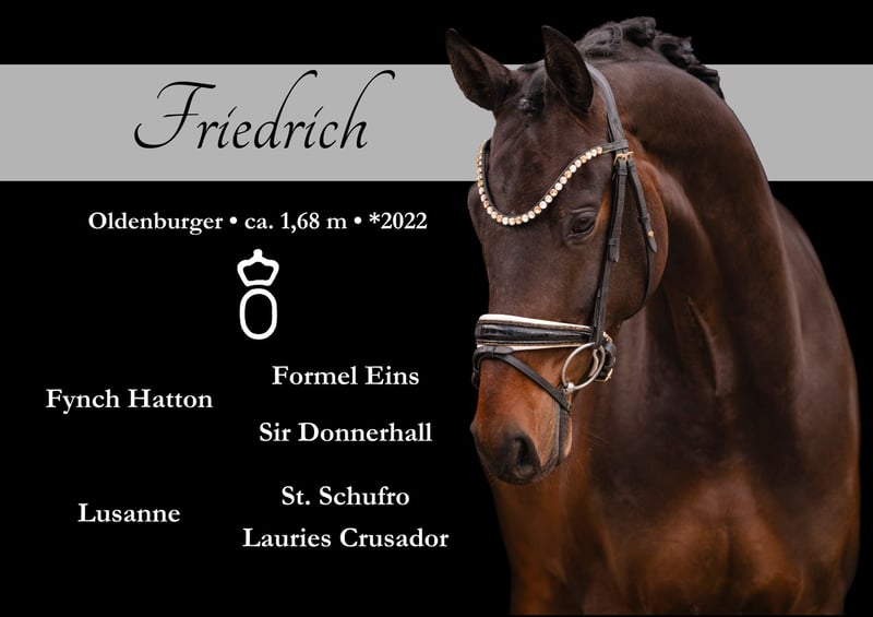 Liebe Interessenten, Für Terminvereinbarungen Probereiten senden Sie mir bitte eine WhatsApp. Für weitere Fragen bin ich tagsüber per WhatsApp erreichbar, telefonisch erreichen Sie mich am Besten zwischen 16 und 19 Uhr. Ich freue mich auf eine Kontaktaufnahme www.angelina-devittorio.de ⭐️Friedrich ⭐️ Alter: 4 jahre (2022) Größe: ca 1,68 m Abstammung: Fynch Hatton X St Schufro Ausbildungsstand: Dressurpferde A Niveau AKU: gute Röntgenbilder vorhanden Standort: bei Ansbach Zum Verkauf steht ein traumhaft schöner, Sohn des Fynch Hatton , der mit drei außergewöhnlich guten Grundgangarten und seiner hervorragenden Perspektive begeistert. Er überzeugt nicht nur durch seine Qualität als Ausbildungspferd, sondern auch durch seinen super lieben Charakter. Super einfach und schön zu reiten . Im Umgang ist er absolut unkompliziert, nervenstark und liebenswert. Super brav auch im Gelände und auf fremden Plätzen - ein tolles Verlasspferd trotz seines noch jungen Alters ! Dieser traumhafte Wallach ist nicht nur ein echter Hingucker, sondern auch absolut amateurtauglich und eignet sich auch bestens für Junioren. Direkt aus Züchter Hand - Ein Pferd von besonderer Güte! ⚜️Tel: 0171-3438949 ⚜️a.devittorio@web.de ⚜️ https://www.angelina-devittorio.de ⚜️ Facebook und Instagram Angelina De Vittorio