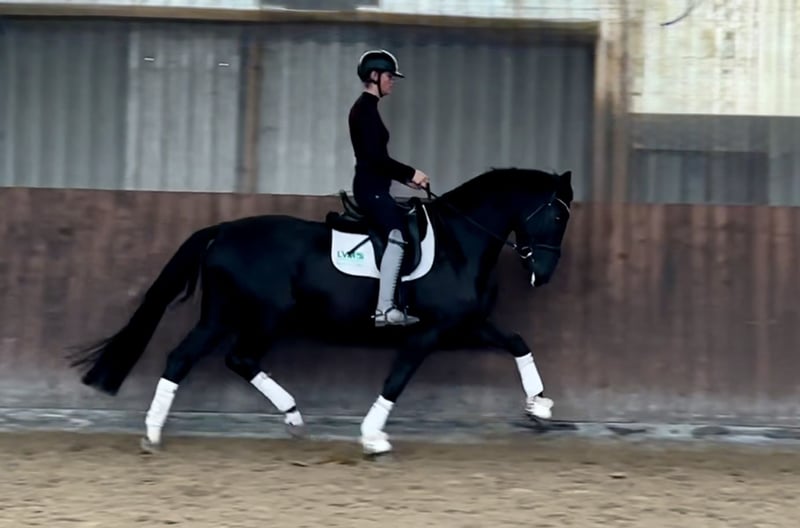 🌟 Elegant Youngster with Future Potential – Secret x Rohdiamant 🌟 This stunning black gelding (born 2021, approximately 16.1 hh) impresses with above-average rideability, willingness to perform, and excellent dressage lineage. He consistently demonstrates a willing work ethic, eagerness to learn, and solid training for his age. His excellent temperament makes him a pleasant partner both in daily handling and under saddle. With Secret as his sire, he inherits modern movement and the qualities of the new generation of dressage horses, while Rohdiamant on the dam’s side provides proven rideability and reliability – a combination that makes him a promising young talent for dressage. Quiet, trainable, and eager to perform – a genuine talent with great future prospects! 📍 Location: Münster (North Rhine-Westphalia)