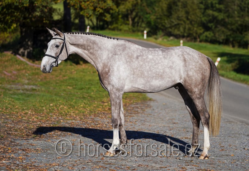 CASPIAN - very promising young jumper with scope Caspian is a very interesting and scopey youngster, was in the previous season successful in show jumping classes up to MT 1.10, shows enough scope to jump higher in the future. He has very nice jump, is enough careful, is not looky or spooky (jumps open water etc.), has easy lead changes, soft mouth, could suit for equitation ring as well. Current x-rays available, sound and correct horse without any bad habits. Price range: 30-40.000€ More information or videos under +420602862723. https://youtu.be/HJBqx0hvTx4 https://youtu.be/d-pS4NhYA2k https://youtu.be/5ATskK7SqqQ Born: 2021, Height: 169cm, Pedigree: Cornet’s Quaprice (Cornet Obolensky) x Verano