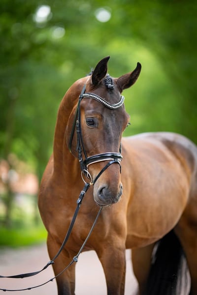 For sale is a charming and exceptionally balanced 5-year-old gelding, Fürst Time, of Oldenburg breed, a descendant of Fürst Fabrice and Statesman. He stands approximately 172 cm tall. Fürst Time is in the initial training phase, but despite his limited experience, he is an extremely well-behaved and relaxed horse during work and easy to ride. He is also a true cuddle bug. Tractors, cars, dogs, etc., do not distract him. He is still at the beginning of his career, but the quality of his basic movements and his genetic predispositions ensure that he will undoubtedly be a fantastic horse for both professionals and amateurs. He performs very well in trail riding and has also encountered small training jumps during free jumping. He is problem-free with the farrier and during loading into the trailer. The horse is available at the Equi Centrum Karkosy facility at: Karkosy 18, 99-100 Łęczyca. The quality of his basic gaits, exceptionally calm character, and genetic predispositions for sport determine the price range of 40,000-60,000. Contact by phone: Felix - (speaks German, English, and Polish): 602681989