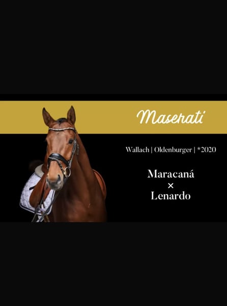 Maserati è un castrone di 173 cm con un carattere fantastico e tre ottime andature di base. Particolarmente notevoli sono il suo passo e il trotto galoppato. A causa della sua altezza, abbiamo dedicato molto tempo alla sua formazione con calma e pazienza. Attualmente salta già con facilità cambi di galoppo e si presenta motivato ogni giorno sotto la sella. Inoltre, è molto dolce anche in passeggiata, sia da solo che in compagnia di altri cavalli. Anche un piccolo percorso di jumping non rappresenta alcun problema.