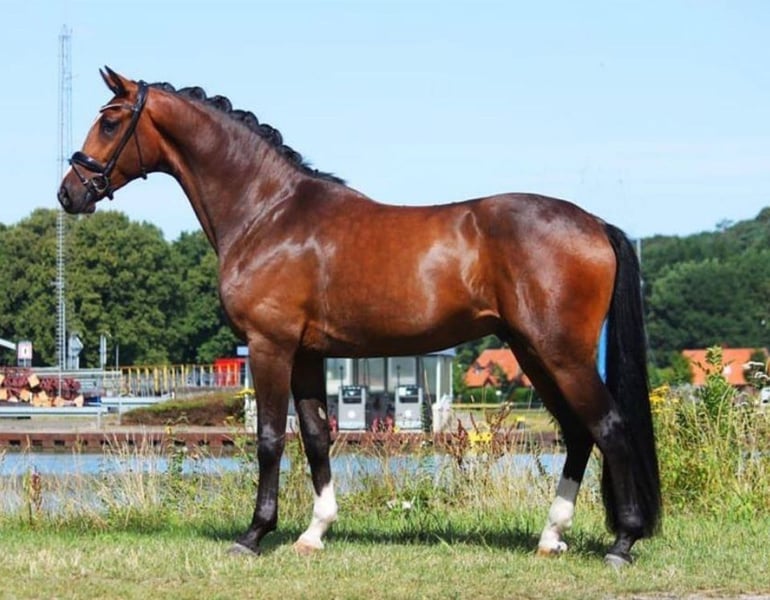 Encanto è un cavallo da dressage di 6 anni, di stampo tipico, un castrone Oldenburg con una genealogia eccezionale e tre passaggi fondamentali potenti ed elastici, che combinano perfettamente espressione, leggerezza e slancio. Finora è stato addestrato a livello L in dressage e mostra già un notevole potenziale per le classi superiori – un vero talento emergente per i cavalieri di dressage ambiziosi. Sotto la sella, Encanto è pieno di energia, desideroso di imparare e estremamente motivato, allo stesso tempo sensibile e collaborativo. Cerca un cavaliere esperto che possa coltivare il suo talento e dargli l’opportunità di esprimersi sportivamente. Nel rapporto quotidiano si mostra obbediente, affidabile e semplice da gestire, un cavallo che si fa volere bene facilmente. Circa un anno e mezzo fa, Encanto ha subito una piccola lesione ai tendini, che si è completamente rimarginata. È in pieno allenamento e il suo livello di formazione cresce costantemente. Encanto unisce carattere, qualità e prospettive – un cavallo da dressage che saprà entusiasmare il suo cavaliere a lungo termine.