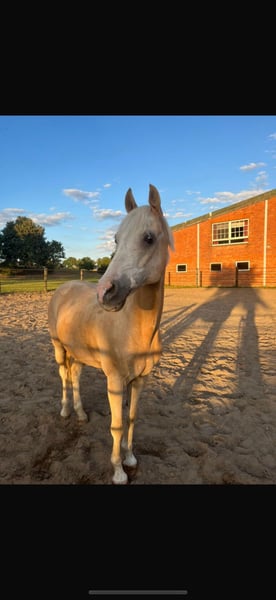 Stylish Palomino Gelding Expressive 18-year-old Palomino, 14.2 hands, with good pedigree. He was trained quite late under saddle as a riding pony, so he is not a fully seasoned children's pony. In handling, he is very straightforward and easy to manage. When riding, he requires confidence from the rider, but well-balanced older children or teenagers also enjoy riding Tango. He rides well with draw reins and can, of course, be ridden without them by more advanced riders. Very easy to work with on the lunge line. Price negotiable Location before price Riding videos available. Phone: 0163 8564070
