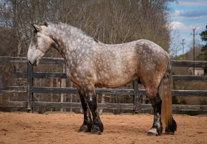 ⚜️𝓽𝓱𝓮 𝐆𝐎𝐋𝐃 𝓢𝓮𝓵𝓮𝓬𝓽⚜️ Happening now thru MONDAY | MARCH 23rd - Available EXCLUSIVELY on HorseBid's website! For more details and to register visit: www.Horsebid.com CONSIGNOR CONTACT: Carolina Sport Horses 704-249-8500 LOCATION: Clover, SC BREED: Percheron X REGISTERED: No COLOR: Dapple Gray HEIGHT: 16.1 AGE: 6 GENDER: Gelding 🐴 CHIEF – Big Enough to Impress, Gentle Enough to Trust Chief stands a solid 16.1 hands — a powerful, well-built Percheron cross gelding with the bone, substance, and presence that make people stop and take a second look. But the moment you swing a leg over… You realize something important. Chief doesn’t ride like a big horse. If you’ve spent any time around horses, you know the truth most riders quietly think about: Big horses can feel intimidating. Especially if you’ve ever ridden one that felt strong in the wrong way. Especially if you’re not interested in proving anything anymore. Chief isn’t that kind of horse. He is steady. He is thoughtful. He is uncomplicated. The greatest concern most riders carry isn’t about riding itself. It’s about confidence. Confidence that the horse underneath you is going to stay level-headed… Confidence that when you ask him to slow down, he will… Confidence that he isn’t waiting for an excuse to overreact. Chief was built to give a rider exactly that. He stands quietly to mount, walks off relaxed on a loose rein, and moves with a smooth, deliberate way of going that never feels rushed. He gives his rider time. Time to think. Time to breathe. Time to enjoy the ride. For riders who worry about things like: • Losing their balance • A horse jumping sideways unexpectedly • Not having brakes when they need them • Feeling like the horse underneath them is too much Chief was built to quiet those concerns. In the arena he rides soft and relaxed, with a steady rhythm that makes him comfortable and easy to enjoy. Out on the trail he is confident without being reactive, taking new environments in stride without getting anxious or hurried. And let’s address something many buyers quietly wonder about: “Will he stay the same once he leaves here?” Chief has proven to be the same kind, level-headed horse day after day. His mindset doesn’t change depending on the environment. He isn’t here to challenge his rider. He is here to take care of them. For the rider who wants: Presence without pressure Size without intimidation Strength without unpredictability Chief offers something far more valuable than just good looks. He offers confidence. And confidence is what allows you to fall in love with riding all over again. Vetting on file from 3/16/26 Contact Caleb @ 704-249-8500