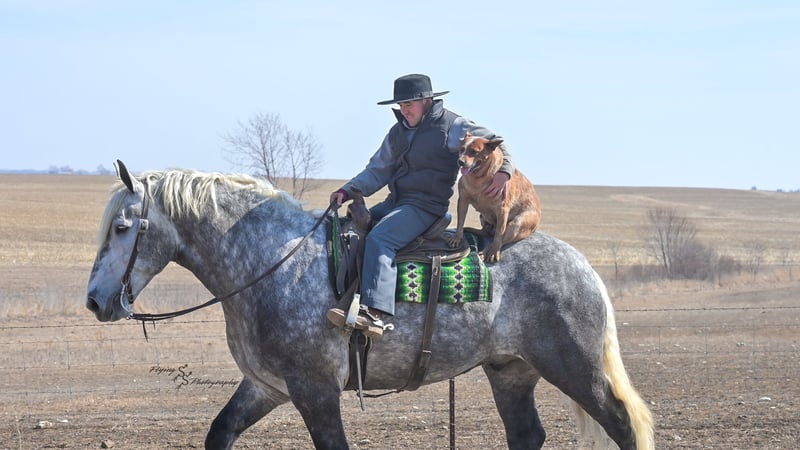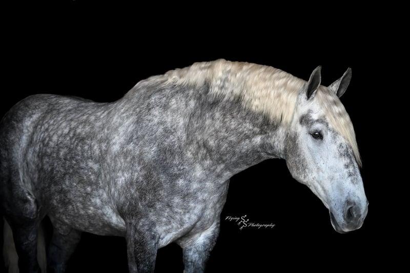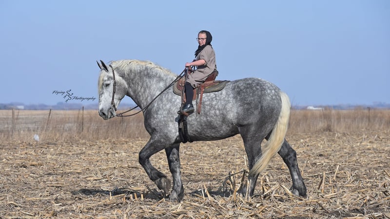 ONLINE AUCTION Place your bids at www.PlatinumEquineAuction.com Starting Bid $3500 Auction ends April 20th, 2025 Need a new saddle? Check out White Rock Saddles on our website or Facebook! Winston is a handsome dapple gray, 6 year old, registered percheron gelding. Our favorite thing about Winston is that he is incredibly safe. The phrase “Safety First” could quite literally be used as his slogan. Winston is a gentle giant, standing a staggering 18.1h tall! He will happily stand at a mounting block, or let you mount from a fence. Do not let Winson’s size intimidate you, he is a joy to handle, even for children! He is a blast to take out on the trails, easily stepping over down timber, crossing water, and going whatever direction you point him in. Winston is perfect for riders of any age and any level of experience. He is very honest on the ground as well as under saddle, admirably taking care of his rider, allowing you to place all of your trust in him. Winston rides western and bareback, bridled and bridleless, and is as comfortable under harness as he is under saddle. He drives absolute best and is incredibly safe, even for beginners or kids. Winston is easy to catch, saddle, bridle, bathe, shoe (easily picks up all 4 feet), and groom. He does great in a stall, as well as in a pasture with other horses. He rides around in an open field just as honest as he does in an arena. He is absolutely traffic safe, and is unphased by anything you will see riding down main street or a highway on a busy evening. Winston will lope in the correct lead, has a nice stop, stands quietly when cracking a bull whip or shooting a pistol, will walk through all of the obstacles, and stays solid even with time off. He is a great fit for the whole family. Winston is even loved by the farm dogs, who he will also allow to ride him! It is impossible to list everything we love about this gentle giant because the list is endless. He is truly a once in a lifetime gelding that we are proud to offer! Winston is current on Coggins, and also has a PPE on file. If you have any questions, or would like to meet him prior to the auction ending, please call Edwin Raber at 319-283-0616. Located in Fairbank, Iowa ONLINE AUCTION Place your bids at www.PlatinumEquineAuction.com Starting Bid $3500 Auction ends April 20th, 2025 Need a new saddle? Check out White Rock Saddles on our website or Facebook!