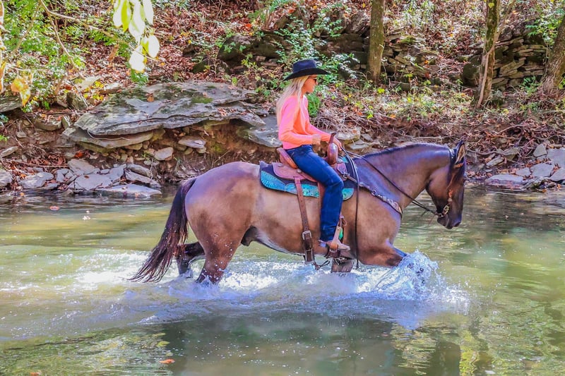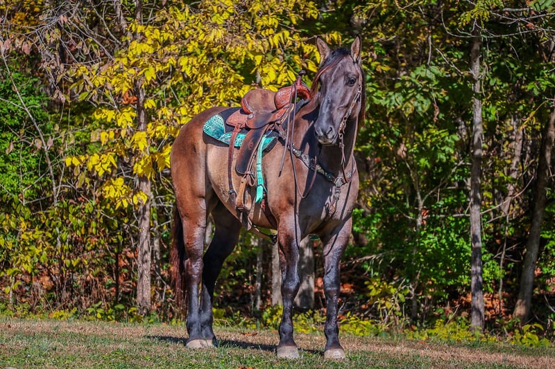 ONLINE AUCTION Place your bids at www.PlatinumEquineAuction.com Starting Bid $3500 Auction ends November 10th, 2024 Need a new saddle? Check out White Rock Saddles on our website or Facebook! This is “LUKE”, a big stout gorgeous PERCHERON QUARTER HORSE CROSSBRED gelding that has been used for ranch work and trail riding. This gelding is handsome, cool, collected, and is the hard to find kind. He stands 16 hands tall and is 7 years old in the prime of his life. He has been ridden in big timber, in the mountains, has been across rivers, and in the deep steep woods. He can carry any size rider all day long. He will ride out alone with no issues. He has been in the arena as well and will lope nice circles and he has a nice soft jog. He will stop nicely on whoa and will back up. He moves off of leg cues and will one hand neck rein. He stands tied, has good ground manners, and gets along well with other horses. He rides low headed and calm. He has been on large rides with many other horses and doesn’t care if he leads the pack or brings up the rear. He is built right, has a good mind, and has lots of outside miles and experience. If you want a big stout GRULLA CROSSBRED with good bone, good feet, and a solid build, check him out. Call HH Horses Erin 304-238-4155 Located in Flemingsburg, KY. ONLINE AUCTION Place your bids at www.PlatinumEquineAuction.com Starting Bid $3500 Auction ends November 10th, 2024 Need a new saddle? Check out White Rock Saddles on our website or Facebook!