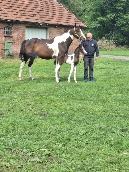Looking for an eye-catcher of exceptional quality? Introducing Valencia S, a 5-year-old ZfdP mare by Strahlemann out of the show-winning mare Viva Luna by Sunny Boy. As a foal, Valencia S received high praise from the German Horse Breeding Association (ZfdP) and was named the ZfdP National Champion Foal for Pinto in 2021 in Alsfeld. She was backed at three years old and achieved an excellent performance test with ZfdP, placing 4th. Subsequently, she went into healthy breeding, producing a filly by Sir Oldenburg in 2025. The mare is incredibly well-behaved, excels in free jumping, and was a true gem during her initial training. She is currently not re-trained but can be easily brought back into work. She is being sold solely to caring hands due to her valuable offspring. A fantastic mare for both competitive sport and high-level leisure riding, but also a true eye-catcher as a broodmare. Videos of her performance test and free jumping are available. A video showing her with her foal at the 2025 foal inspection can be viewed on ehorses. Viewing possible at any time. A health certificate (TÜV) will be provided upon serious purchase interest. Otherwise, she is perfectly healthy and extremely well-behaved.
