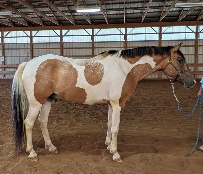Johnny Be Good is a 10 Year old Double Registered Pinto (PtHA), Buckskin (ABRA) Tobiano Gelding, 16.1hh. He is a big puppy dog, in your pocket, sweet soul. On the ground he is a gentleman, easy to work with, and a sweet heart. Under saddle he is such a fun horse! Enjoyable, comfortable to be on, a bit of a push ride, he likes more whoa than go but will move up when asked, he is responsive to your leg and light in the bridle. He is very willing and tries to please his rider. He is adjustable within each gate, an uncomplicated and straightforward ride. He has a lead change, you have to ask, it is not automatic yet. He rides inside, outside, in an arena or a field, and on trails. Johnny joined us as a lesson horse. He has the ability and willingness to carry kids and adults around the lesson ring, and he is capable of so much more. Johnny is a barn favorite to ride, to groom, and hangout with. He is easy to bathe, load, trailer, tie. He thrives in a program, and would be perfect for a kid or an adult, from an advanced beginner with a trainer on up. He is barefoot, an easy keeper, up to date on vaccinations and farrier. No vices! Johnny is the unicorn that so many are searching for! PPE welcome at your expense. Text 315-399-7840 for more information or to schedule an appointment to meet Johnny. Located in Elbridge, NY https://youtu.be/jxTgDOuDS8U?si=Hy_u4jQzReXlbfqZ https://youtube.com/shorts/rL4FY-Yzb2c?si=KK9PQ5ctbZPpjAv0