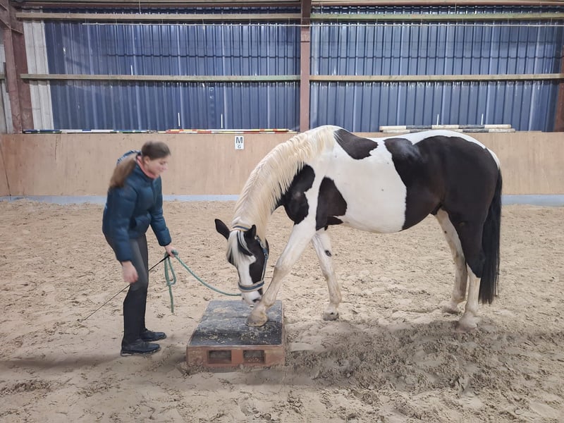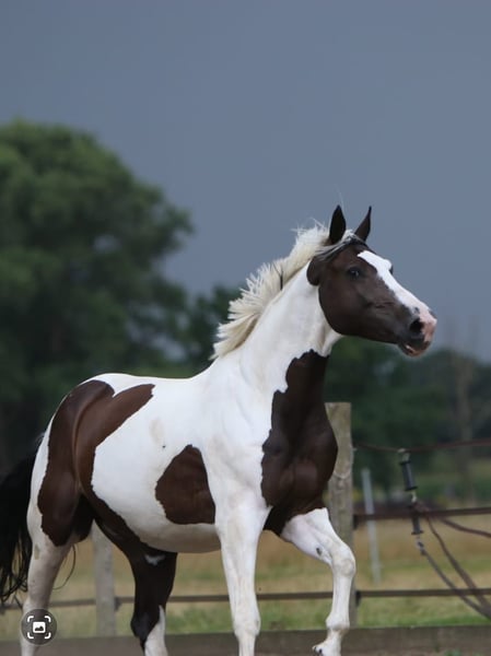 Notre hongre de 13 ans, pie, recherche un foyer chaleureux et aimant ! Pino est un demi-sang polonais mesurant 1,68 m au garrot. Il se distingue par son tempérament vif et sensible, et il est toujours amical et sociable avec les autres chevaux et les humains. Très adaptable au sein du troupeau, il peut cohabiter aussi bien avec des juments qu’avec d’autres hongres. Jusqu’à présent, Pino a principalement été monté en loisir. Il connaît aussi bien le manège et la carrière qu’équitation en extérieur, où il reste attentif et facile à gérer. Cependant, il ne s’agit pas d’un cheval pour débutants. Parfois, il faut un peu de persuasion, mais il reste très motivé et prend beaucoup de plaisir à la fois en travail à la longe et en liberté. Pino souffre d’asthme bronchique, ce qui explique qu’il n’a pas été monté depuis un an et demi. Avec une gestion adaptée, notamment une exposition à l’air frais, des journées entières en pâture ou paddock, une nourriture peu poussiéreuse, et en restant proche de la mer, Pino est montable et ne nécessite pas de traitement médicamenteux. Il vit actuellement en mer du Nord depuis deux ans et ne présente plus de symptômes. Nous souhaitons pour notre Pino un nouveau foyer aimant près de la mer du Nord, afin qu’il puisse continuer à vivre sans souci grâce à l’air salin.