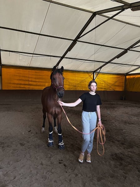 Clever Boy to koń, który przyciąga wzrok swoją budową i ruchem. Jest bardzo utalentowanym koniem ujeżdżeniowym, startującym na poziomie klasy N, z możliwością dalszego rozwoju. Wykonuje elementy klasy C, takie jak pół piruet w stępie, łopatka i ciąg w kłusie oraz galopie, kontragalop i lotne zmiany nóg. Jest koniem chętnie uczącym się nowych rzeczy. Koń jest w idealnym stanie zdrowie, nigdy nie miał żadnego urazu, charakteryzuje go bardzo przyjazny charakter. Clever Boy jest bezproblemowy przy zabiegach pielęgnacyjnych, transporcie i goleniu. Dobrze odnajduje się w stadzie i chętnie spędza czas z ludźmi. Pod siodłem jest wygodny, energiczny i nadaje się zarówno dla ambitnego juniora, dorosłego zawodnika czy dla seniora chcącego spokojnie cieszyć się przejażdżkami na łonie natury. Jak podkreślają trenerzy zbiór wszystkich tych cech u jednego konia to prawdziwa rzadkość. W przypadku zainteresowania proszę o wysłanie wiadomości, zainteresowanym przekażę nr do córki, która odpowie na wszystkie pytania. Oczywiście jest możliwość obejrzenia i przetestowania konia po ustaleniu daty i godziny (stadnina w okolicy Gdyni). PS. Nie wiem dlaczego w ogłoszeniu dodaje się informacja, że koń jest "gorącokrwisty" i nie można tego zmienić - a to nie jest prawdziwa informacja.. Koń jest bardzo spokojny, opanowany i bezproblemowy. Sprzedaż bezpośrednia od użytkownika konia (bez jakichkolwiek dodatkowych kosztów)