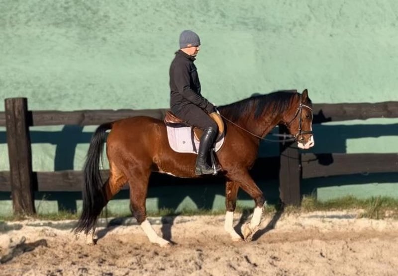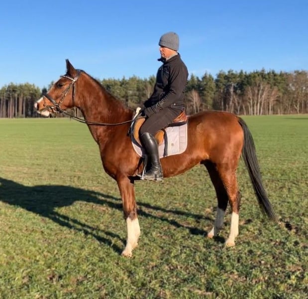 Zum Verkauf steht ein Wallach, der im Januar nächsten Jahres 4 Jahre alt wird. Er ist ein braves, fröhliches und ausgeglichenes junges Pferd, unkompliziert in der Herde. Er kennt den Hufschmied, den Tierarzt sowie Nutztiere. Der Wallach ist korrekt angeritten – er arbeitet in den drei Grundgangarten auf dem Platz und im Gelände. Er ist fein an den Hilfen und arbeitet gerne mit, was die Arbeit mit ihm angenehm und komfortabel macht. Mit weiterer Ausbildung hat er gute Voraussetzungen für den Sport. Ideal für jemanden, der einen jungen, folgsamen und vielversprechenden Partner für die weitere Ausbildung sucht. Standort: Polen, ca. 70 km von Görlitz entfernt (ca. 40 Minuten). Transport: möglich.
