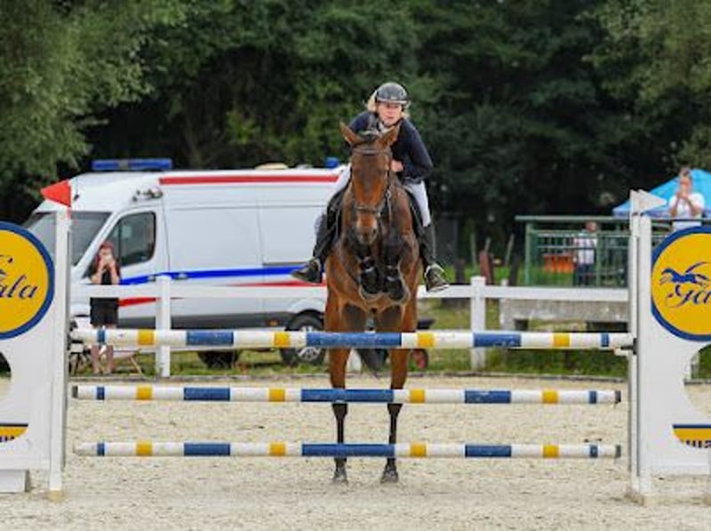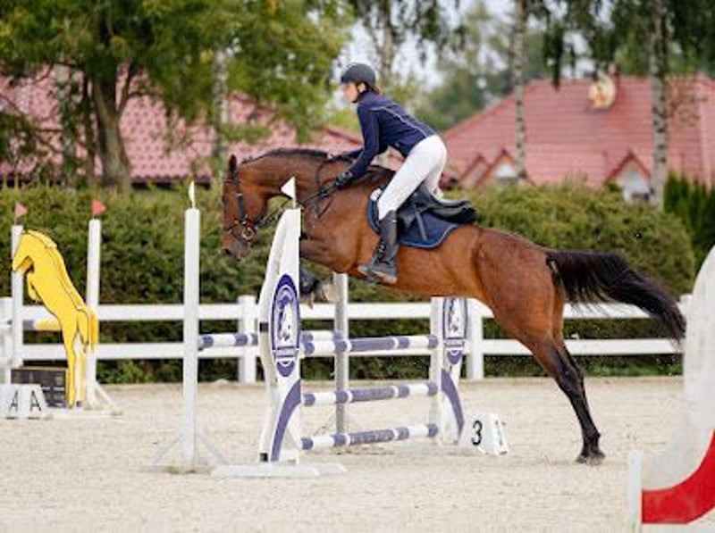 ENG Below Na sprzedaż wałach z rocznika 2017 o imieniu Lotos. Ma 176 cm wzrostu. Regularnie werkowany, odrobaczany. Pod stałą opieką fizjoterapeuty, lekarza weterynarii (co pół roku robione zęby). Stoi wolnowybiegowo ze stadem. Ujeżdżony na poziomie P klasy, starty w P klasie, w domu naskakany do 120cm. Skacze również crossowe przeszkody . W zeszłym roku rozpoczął pierwsze starty w konkursach wraz ze swoją właścicielka. Uczestnik tegorocznych Mistrzostw Okręgu ze swoją wlascicielką (w półfinałach zerowe przejazdy,ale przez błąd zawodniczki i zapomnieniu o ostatniej przeszkodzie w wynikach eliminacja,finał przypadkowa zrzutka).Aktualnie w treningu, przygotowuje się do konkursów klasy N. Koń z dużymi możliwościami, idący do przeszkody, ale pod kontrolą, pomagający na treningach i w parkurze, ale potrzebuje świadomego i konsekwentnego jeźdźca. Chodzi w tereny sam, jak i z innymi końmi. Jeździ tylko na tą chwilę w koniowozie, przyczepa jeszcze do przepracowania Zapewniamy transport w atrakcyjnej cenie do nowego domu. Koń zdecydowanie dla kobiety, do mężczyzn ostrożnie podchodzi. Filmy przesyłam poprzez Whatsapp- +48 500 853 318 ———————————————————————— For sale: a 2017 gelding named Lotos. He is 176 cm tall. Regularly trimmed and dewormed. Under the constant care of a physiotherapist and veterinarian (teeth done every six months). He is free-range with the herd(summer). He is ridden at P-class level, competes in P-class, and at home jumps up to 120 cm. He also jumps cross-country obstacles. Last year, he began competing in competitions with his owner. He participated in this year's District Championships with his owner (in the semifinals, he had zero runs, but due to the rider's mistake and forgetting the last obstacle in the results, he was eliminated, and in the final, he accidentally knocked down a pole). He is currently in training, preparing for N-class competitions. He has great potential, goes to the fence but under control, and help in training and at the shows, but needs a conscious and consistent rider. He goes out on the trails alone and with other horses. He's currently only used to a horse truck,the trailer still needs work. We offer transport to his new home at an attractive price. This horse is definitely suited for women, but he's wary of men. More videos -WhatsApp +48 500 853 318