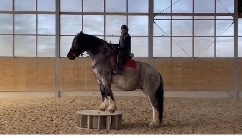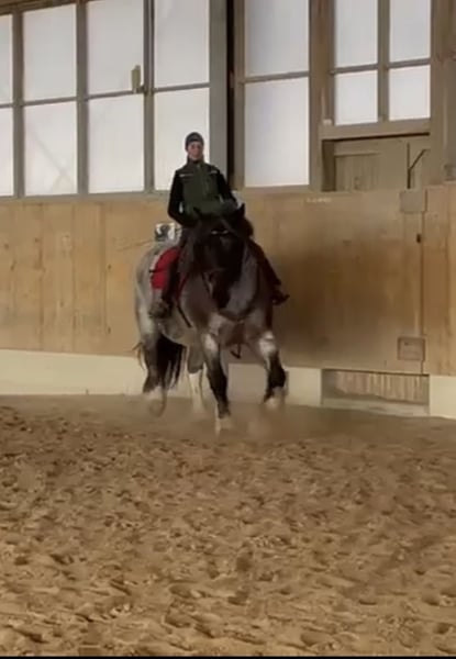 Gut gerittenes Kaltblut in toller Wechselfarbe