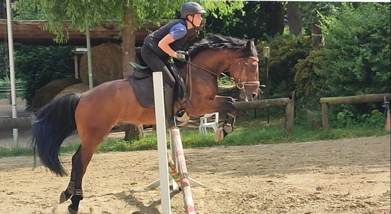 Name: Charlie (Cygan) Rasse: Polnisches Warmblut Geschlecht: Wallach Alter: 10 Jahre Stockmaß: ca. 1,55 m Farbe: Brauner Charlie ist ein aufgeweckter und sensibler Wallach, der einen festen Menschen an seiner Seite sucht. Er deckt sowohl Jugendliche als auch kleinere Erwachsene gut ab und wurde bisher als Freizeitpferd bei uns Im Schulbetrieb eingesetzt. Er ist allerdings nicht für Kinder oder Anfänger geeignet. Er ist an Vereinsturnieren mitgelaufen, geht sicher ins Gelände, springt Cavaletti und macht beim Ringstechen zuverlässig mit. Charlie liebt Abwechslung im Alltag und arbeitet gerne mit, wenn er seinem Reiter vertraut. Allerdings kommt er nicht gut mit häufig wechselnden Reitern zurecht und benötigt daher eine konsequente, selbstbewusste Bezugsperson, die ihm Sicherheit gibt und ihn klar führt. Er hat eine schnelle Hinterhand und kann in bestimmten Situationen auch mal etwas temperamentvoll reagieren – z. B. durch einen kleinen Buckler, wenn er sich überfordert oder missverstanden fühlt. Mit Ruhe, Erfahrung und klarer Kommunikation ist er jedoch gut zu händeln. Charlie ist geimpft, regelmäßig beim Schmied und hat keine bekannten gesundheitlichen Einschränkungen. Derzeit steht er auf einem Einzelpaddock, wird bei uns jedoch nicht ausreichend ausgelastet. Wir wünschen uns daher für ihn einen Platz mit viel Bewegung und Weidegang, wo er mental und körperlich gefordert wird.